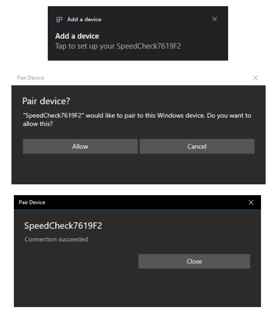 - Ensure you are within close range of the system and wait for the software to detect nearby Bluetooth devices. You should see the system advertise it's Bluetooth name as SpeedCheckXXXXX by default. It can later be renamed using the Set Time & ID button under the System tab.