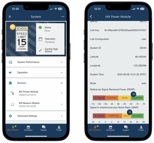 Under the MX Power Module screen you can view the cellular signal strength for your system: