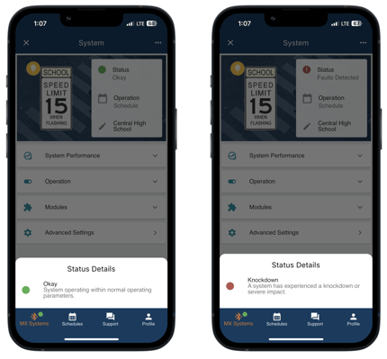 MX systems have an integrated knockdown sensor which tracks the orientation of the system. If you have disrupted the power module or powered the system on with the system not sitting upright you may flag the knockdown sensor.