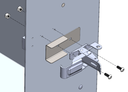 When specifying your project, let your distributor know that you require the padlockable latch option. Contact Carmanah if you wish to retrofit the padlockable latch option into an existing G Series/SpeedCheck installation. The latest version (as of 2020 Q3) of the cabinet and cabinet door is required for compatibility. This version includes half-shear indents for locating the drill holes for the latch and a slot in the cabinet door for securing the latch.