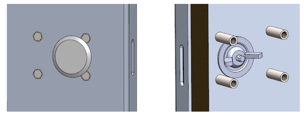 Retrofitting the padlock latch into an existing Type II lock cabinet will require the lock to be removed and a plug installed and secured with a washer and wing nut.
