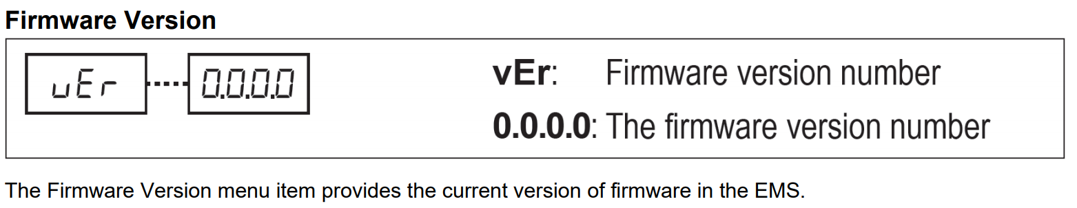 ² There is a wide range of firmware versions that have been deployed over several hardware releases. Version 1.1.5.0 is for systems that are able to change the input type, “inpt”, between these options - NO, NC, BTTN.