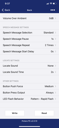 - Adjust the Speech Message Volume settings in the Polara Field Service app.