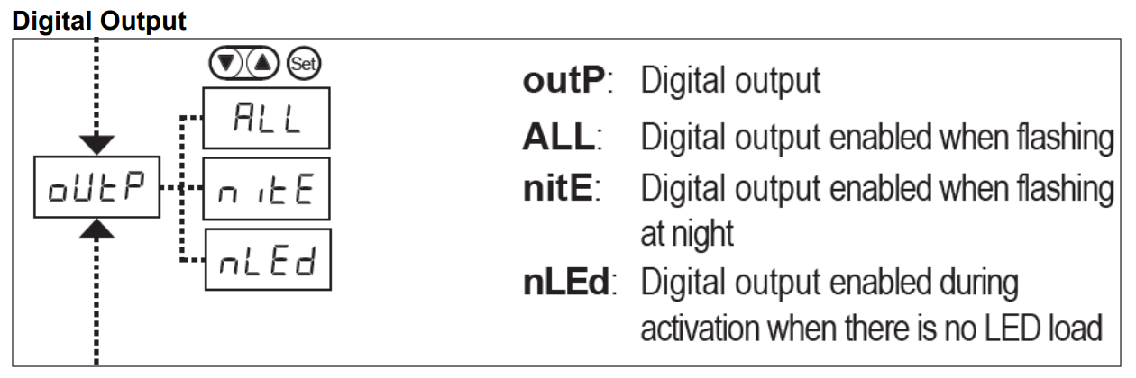 If your system does not have an LED load connected to it (RRFB, LED enhanced sign, circular beacon) you will need to set the OUTP setting to NLED. See our article here for more information.
