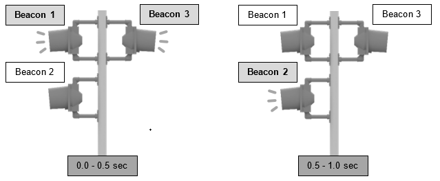 The LED wiring and intensity setting must be configured correctly for this flash pattern to work properly. Refer to the full product manuals here for more information on setting up a triple beacon system.