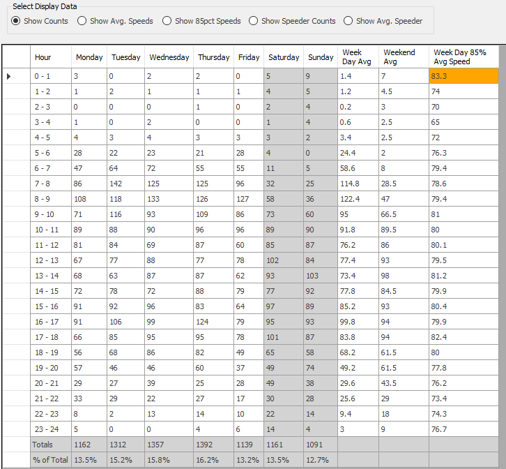 The data that would be applicable for the WW200 is not necessarily the vehicle speed but the counts (wrong-way events). The data can be analyzed in a variety of ways through the software or as raw data in CSV. Below is a snapshot from a system report.
